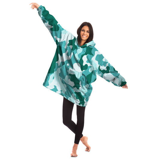 Hand-Made Snug Hoodie Wearable Blanket | Camo-Chic | Aqua