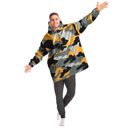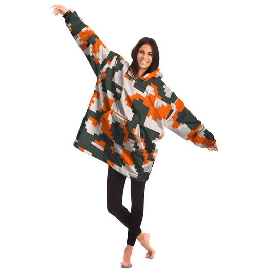Hand-Made Snug Hoodie Wearable Blanket | Camo-Chic | Digital Orange